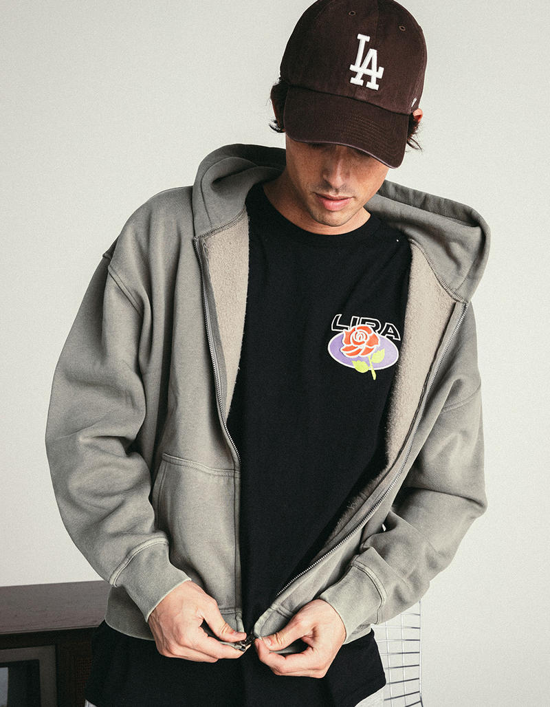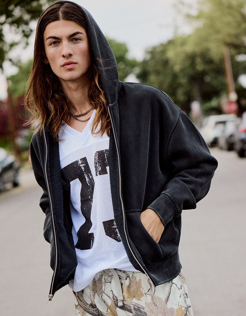 RSQ Mens Washed Zip-Up Oversized Hoodie